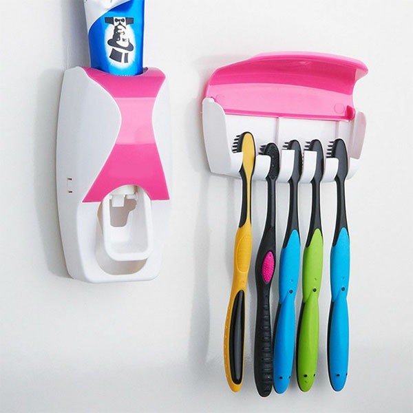 3. Place the press2paste toothpaste dispenser against the surface and press down firmly.