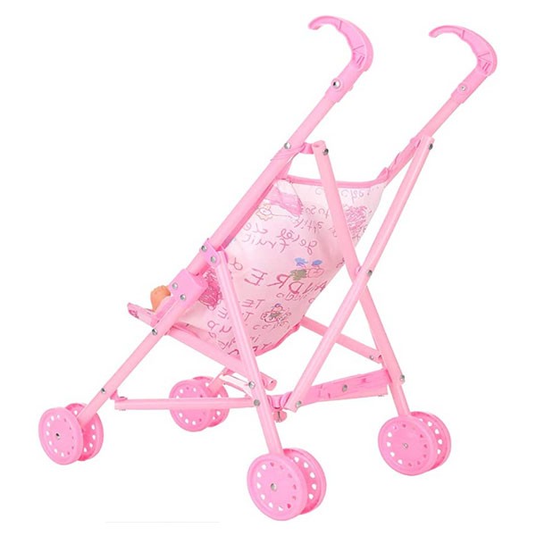 1. Plastic frame foldable stroller to carry up to 12inch doll. Include a 10inch baby doll, can talking when pressing her belly.